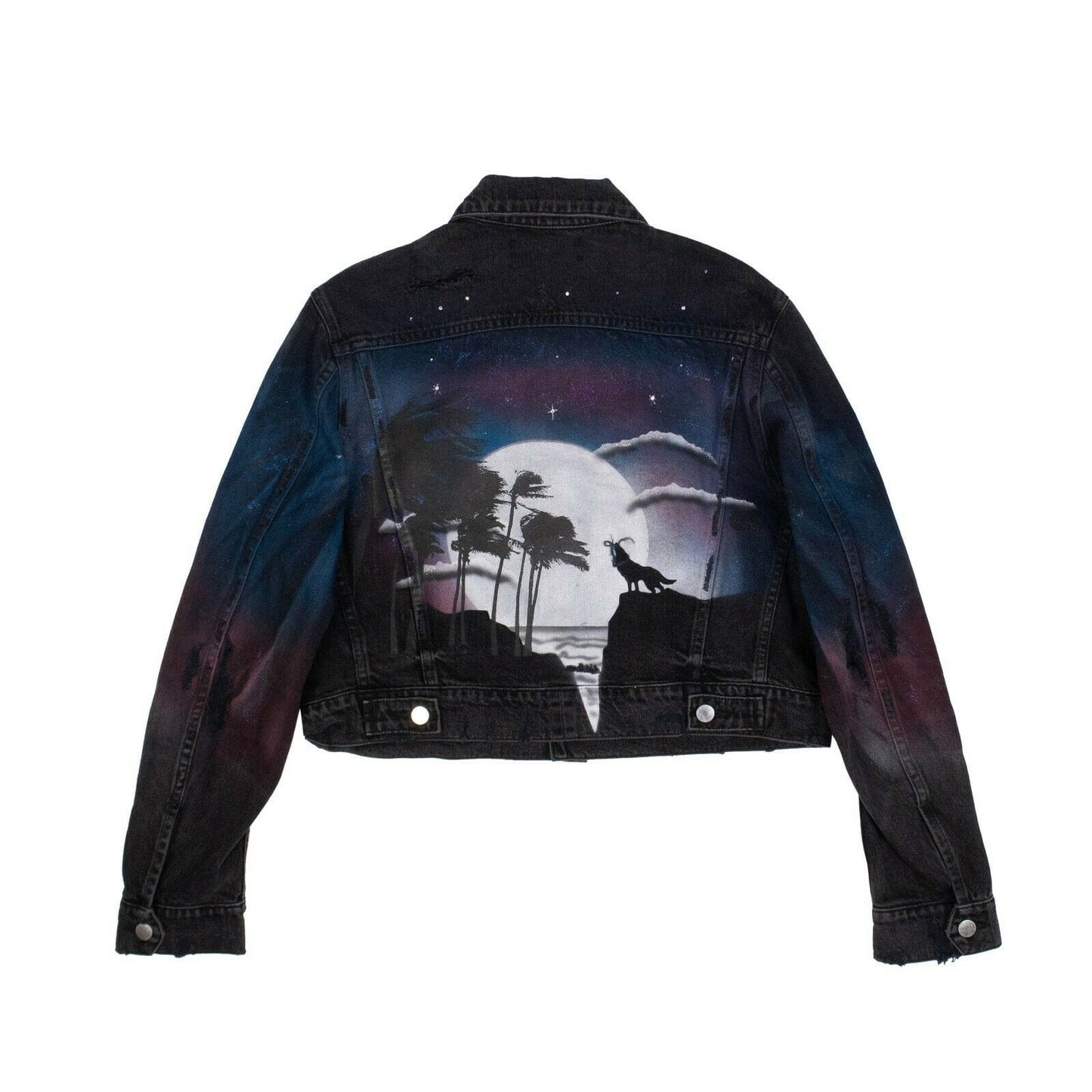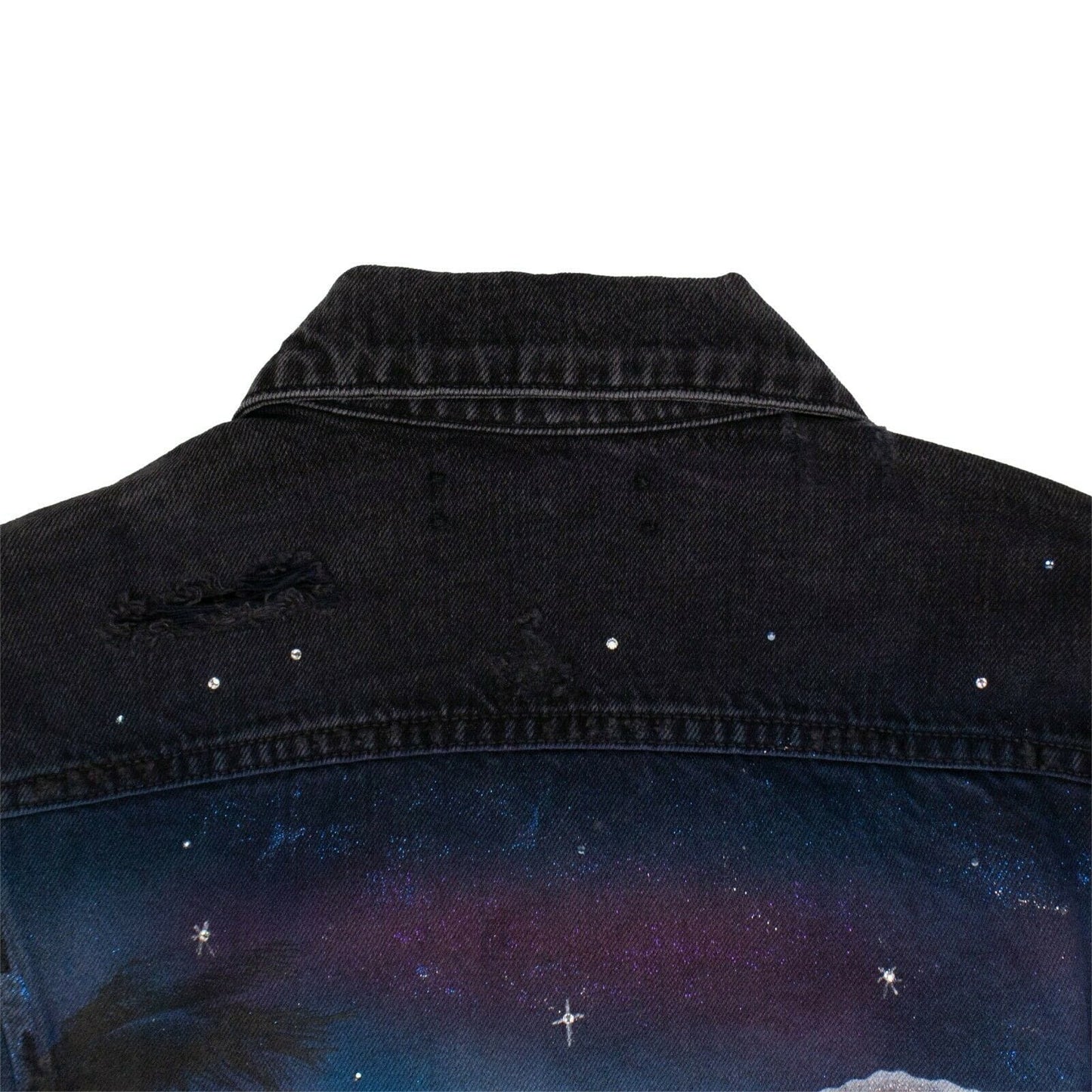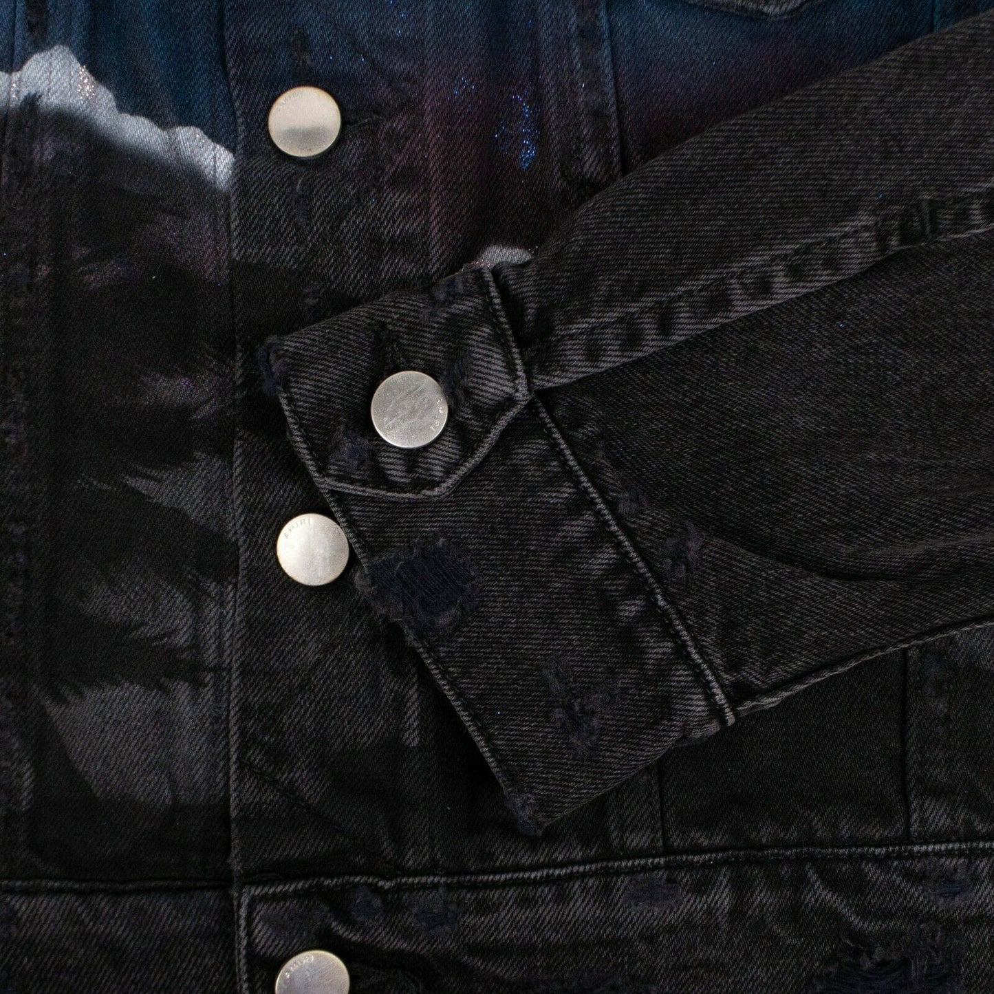 Cotton Airbrush Design Crop Denim Trucker Jacket - Black