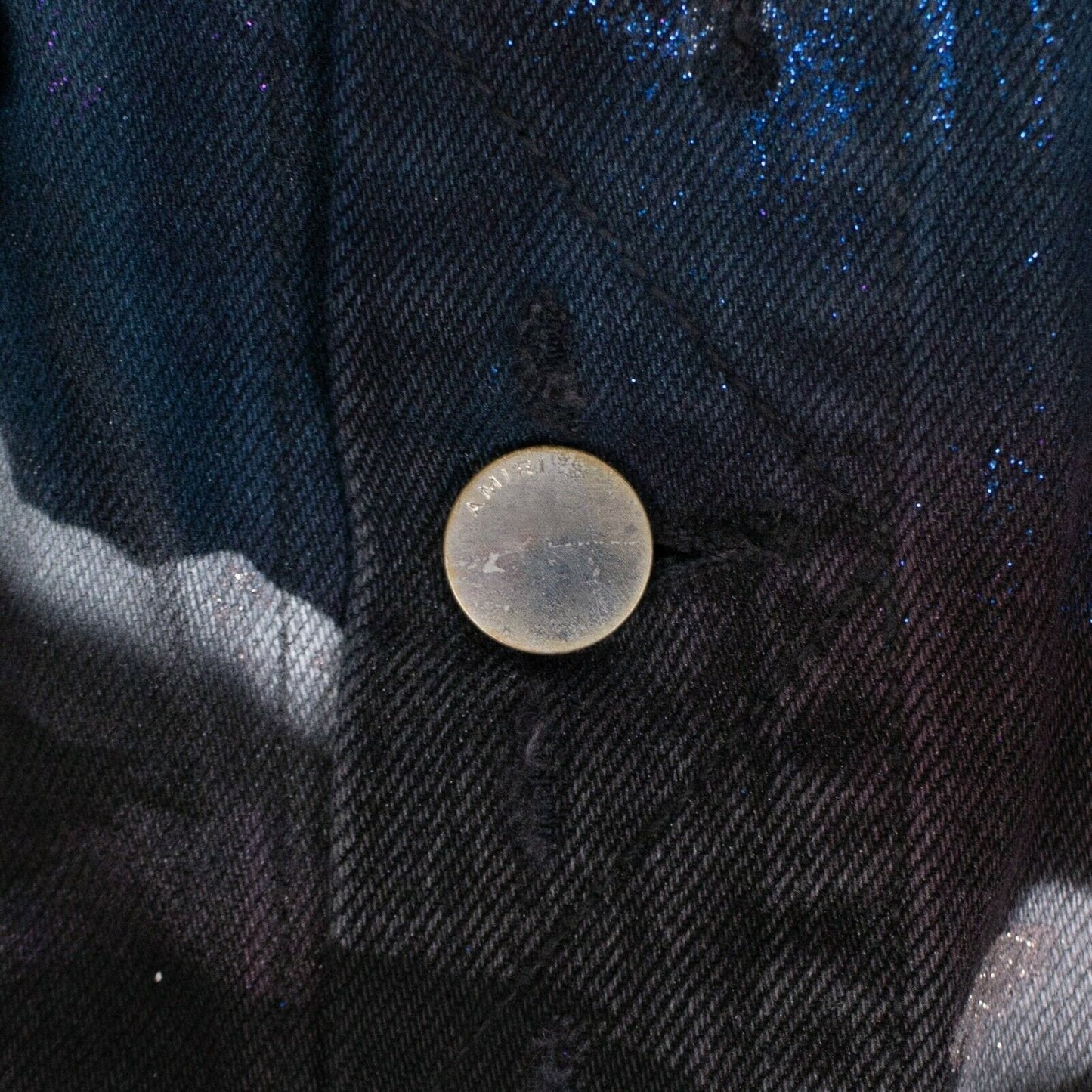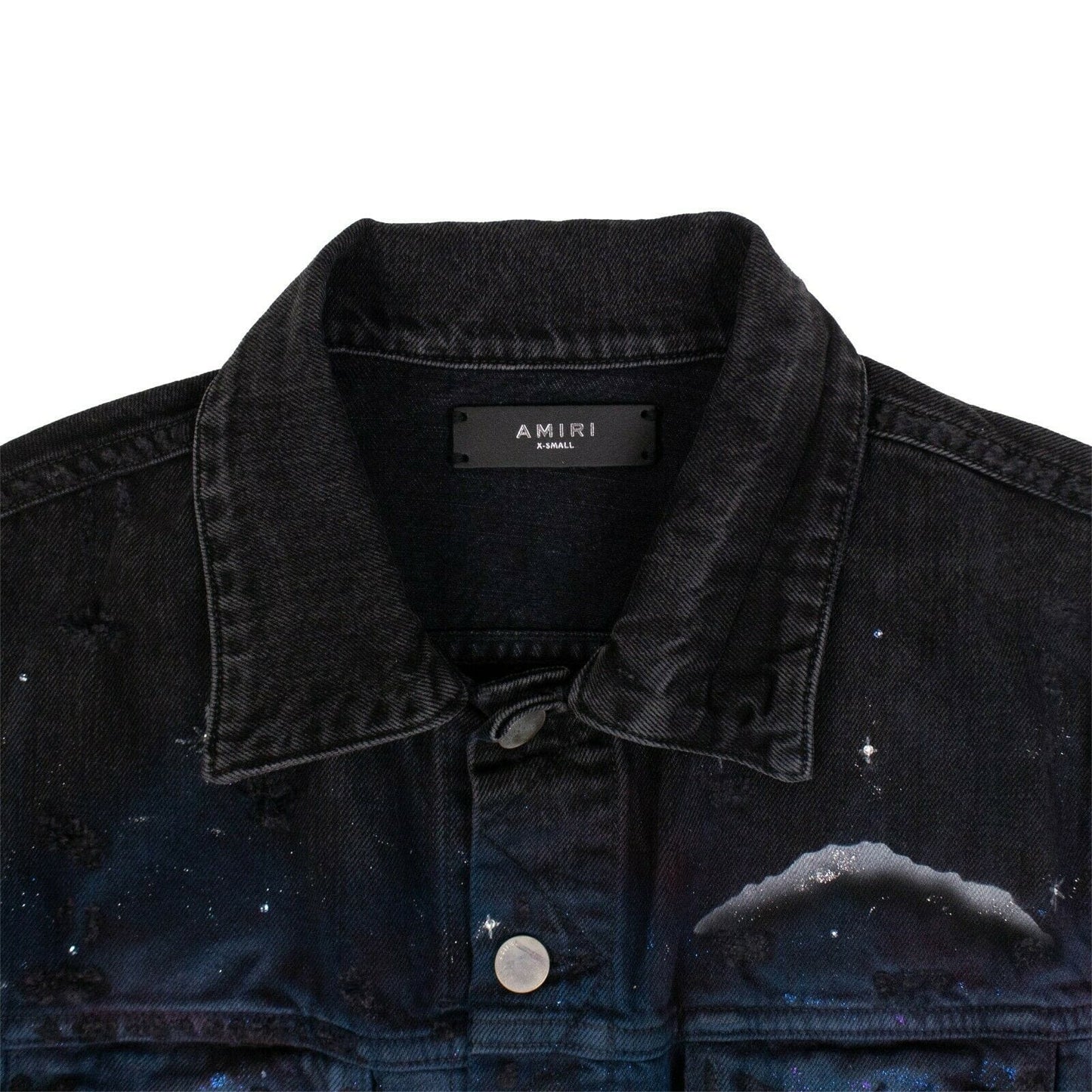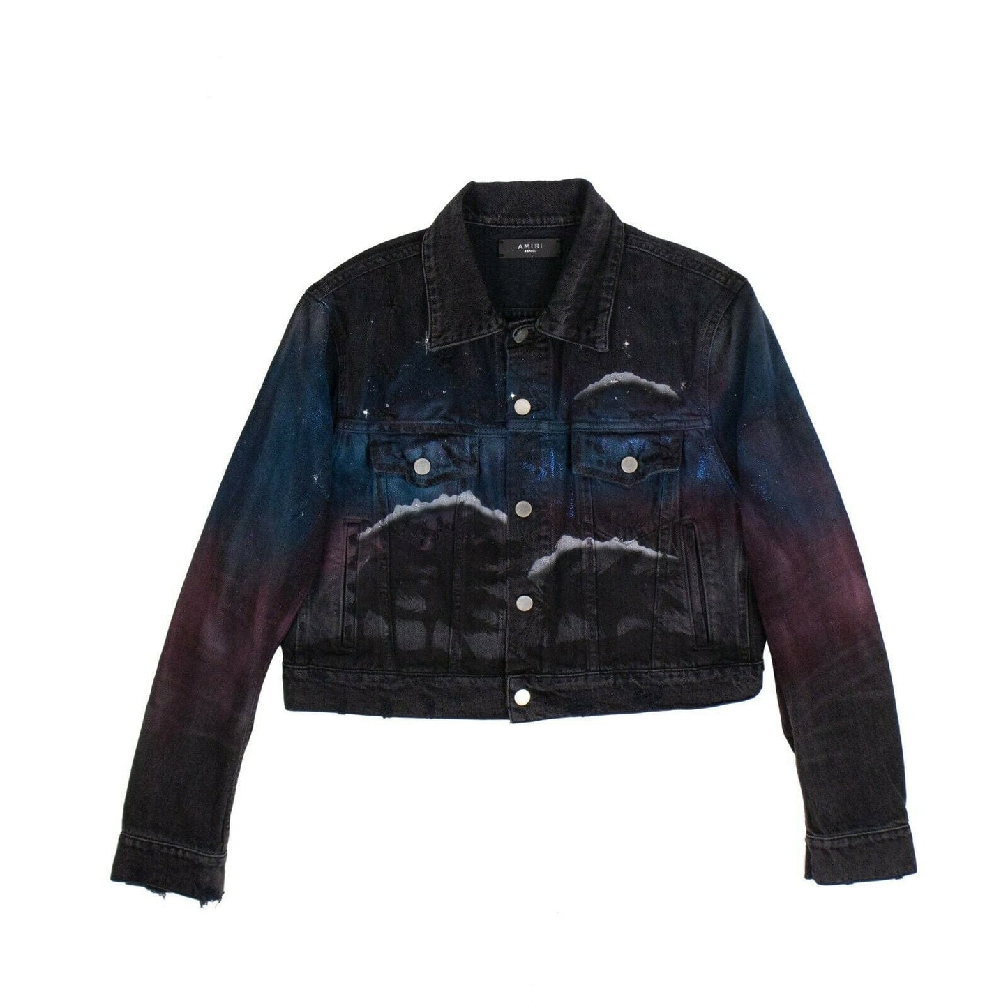 Cotton Airbrush Design Crop Denim Trucker Jacket - Black