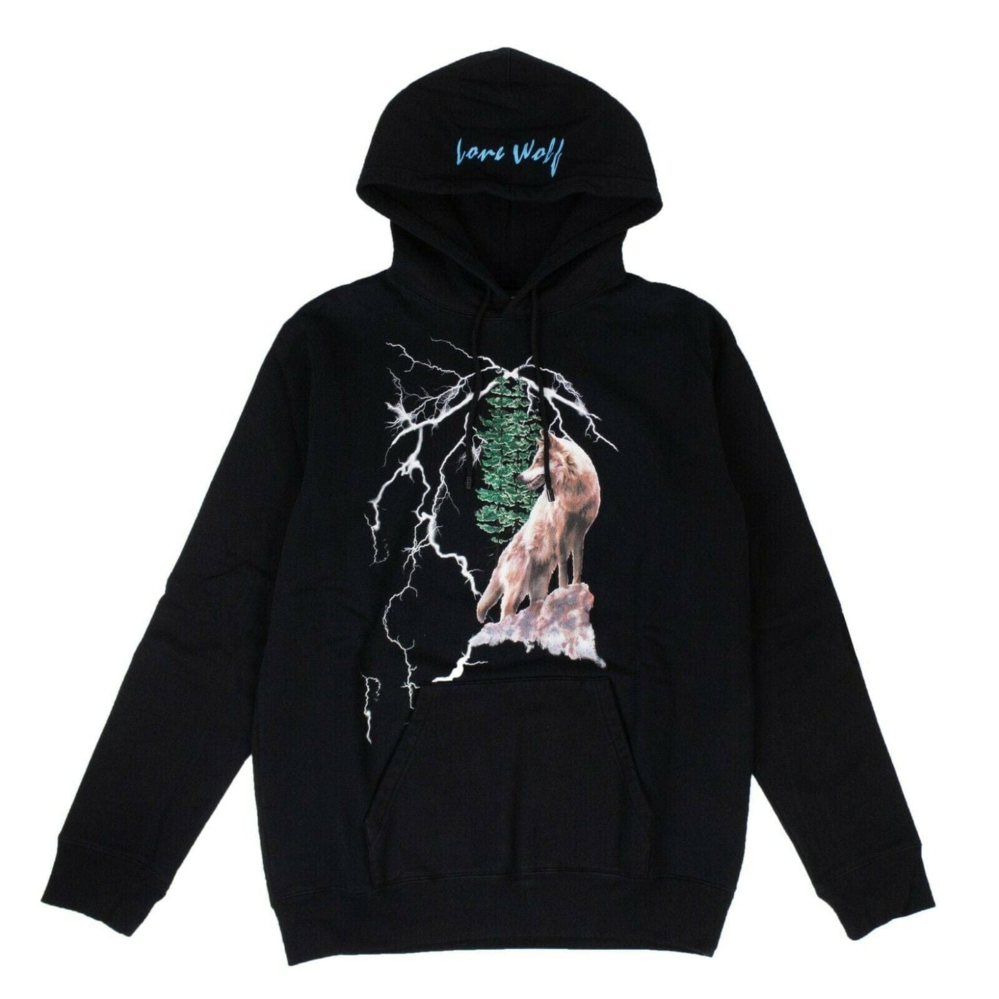Cotton 'Wolf Lighting' Hoodie Sweatshirt - Black