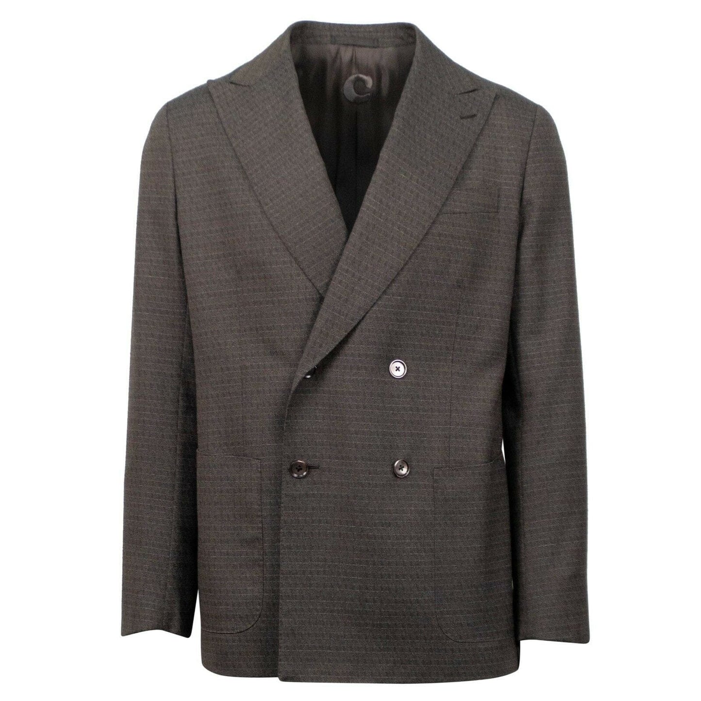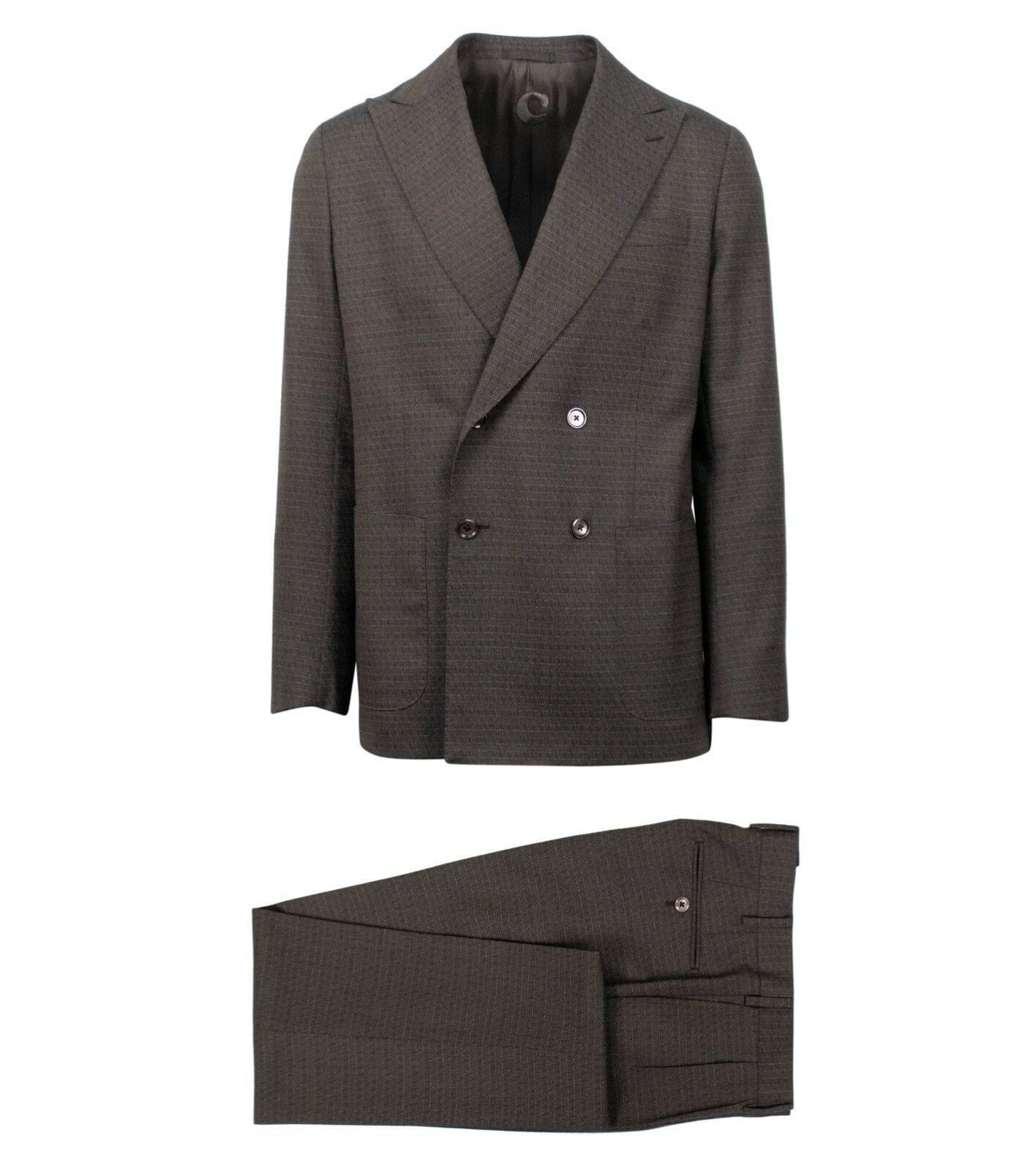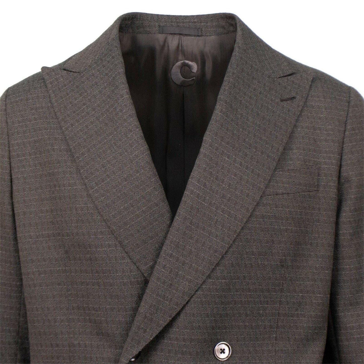 Drop 8 Small Check Wool Double Breasted Slim Fit Suit - Brown