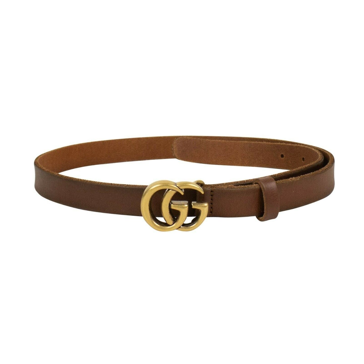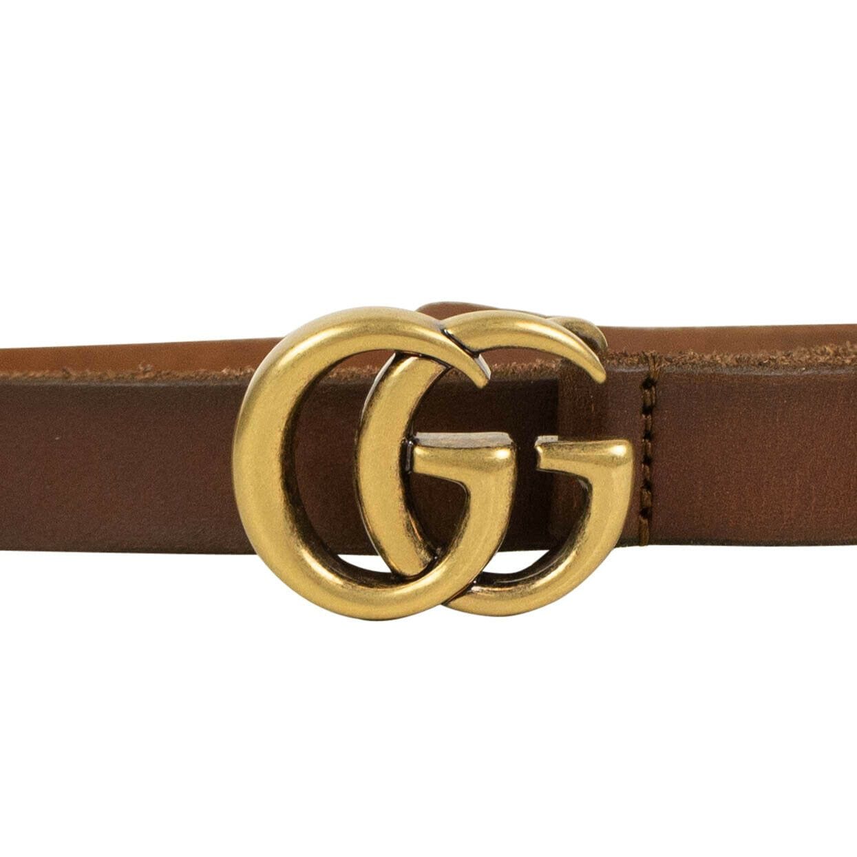 Leather Double G Skinny Belt - Brown