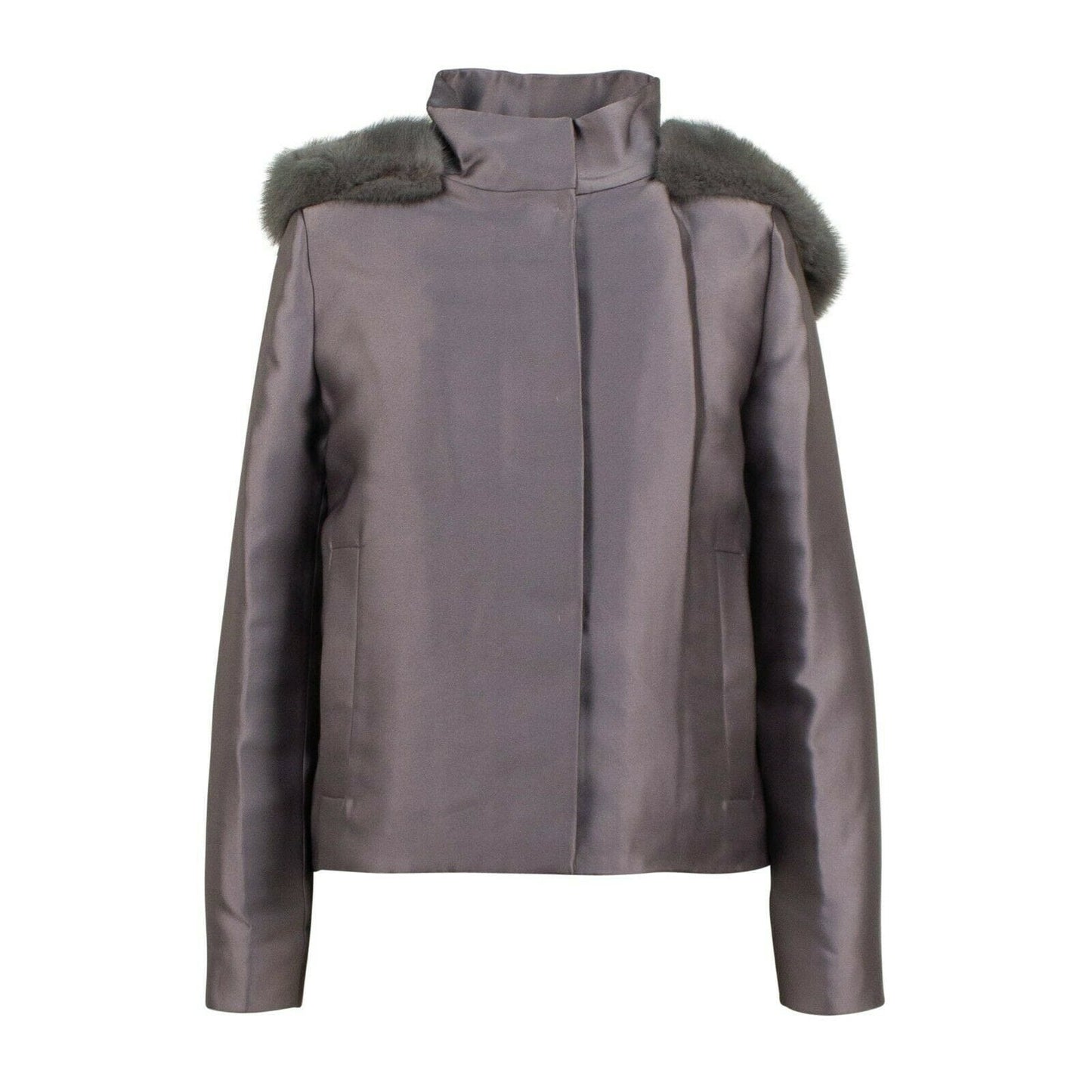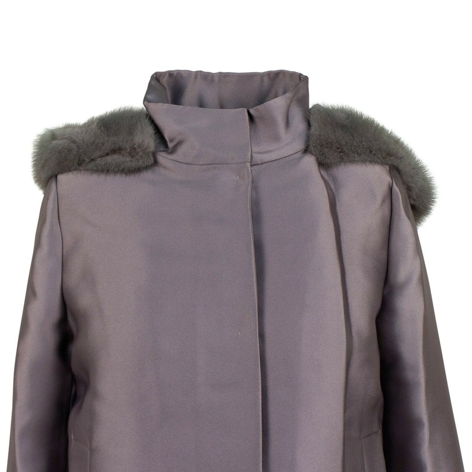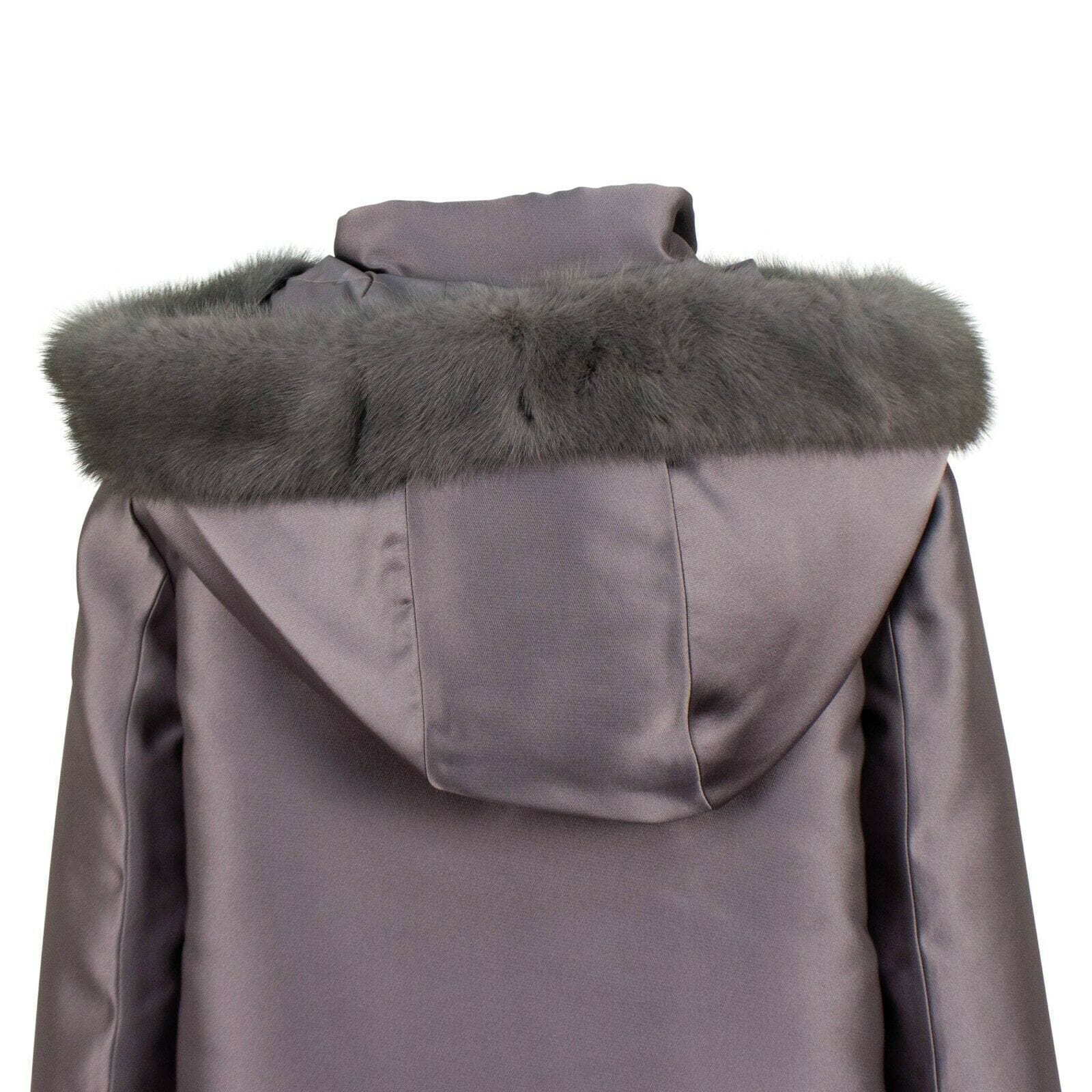 Short Fur Trim Hood Down Filled Coat - Gray