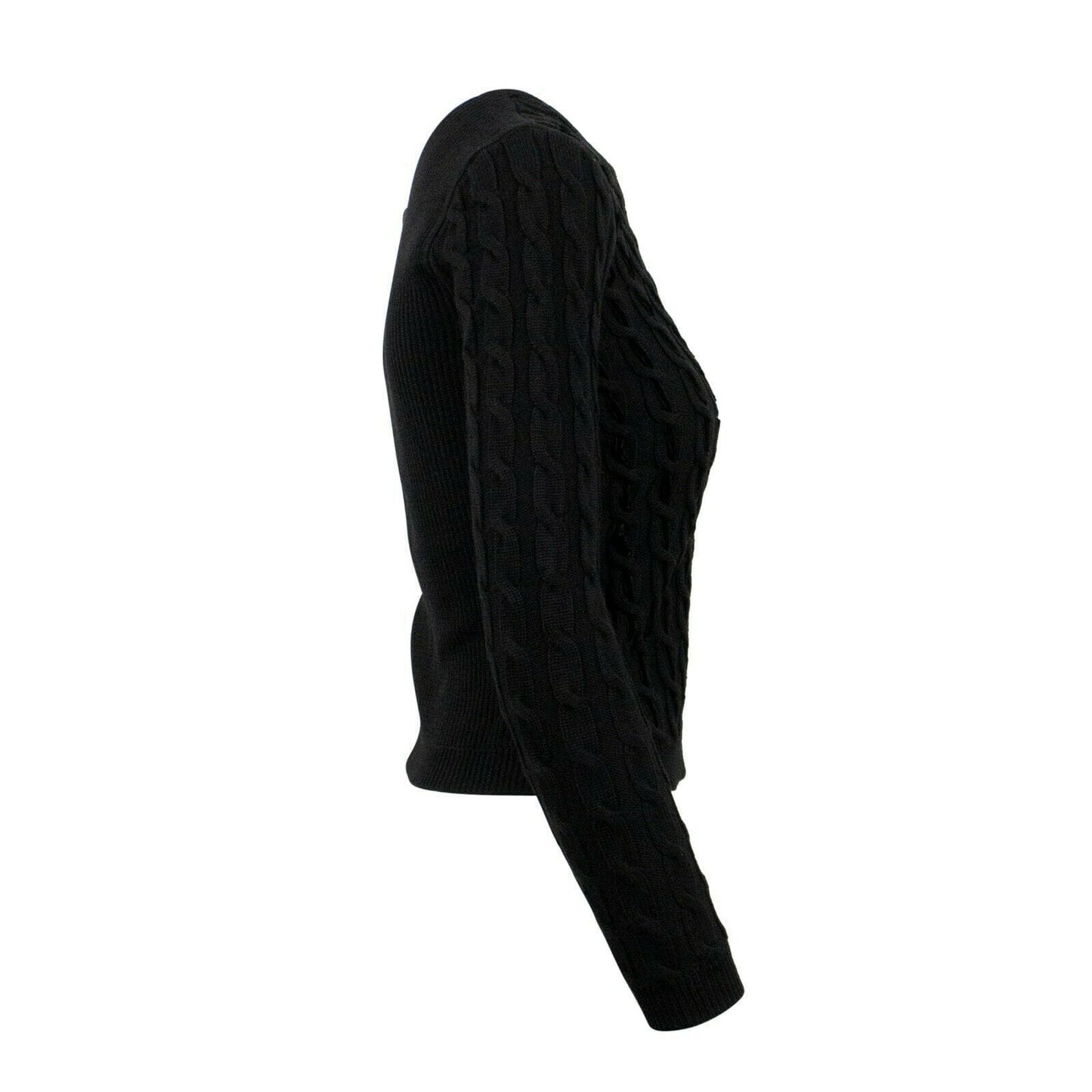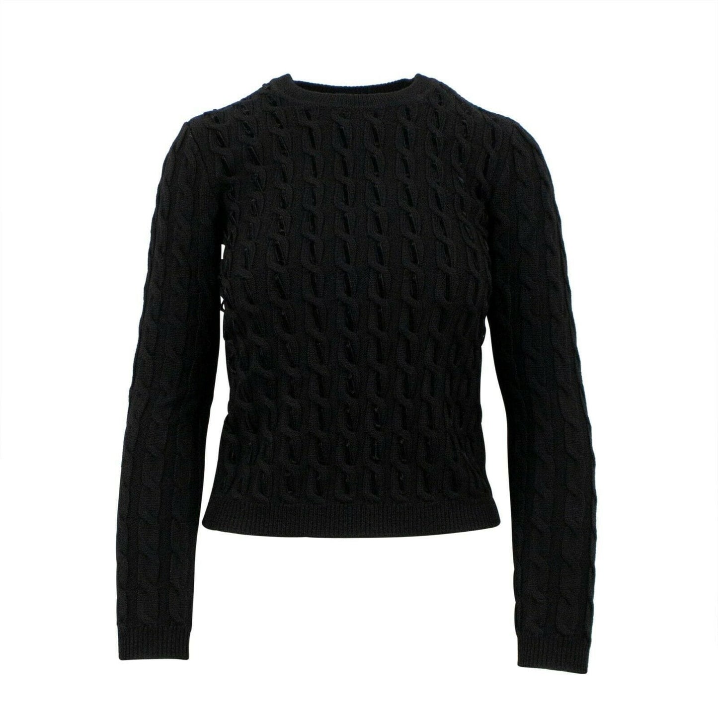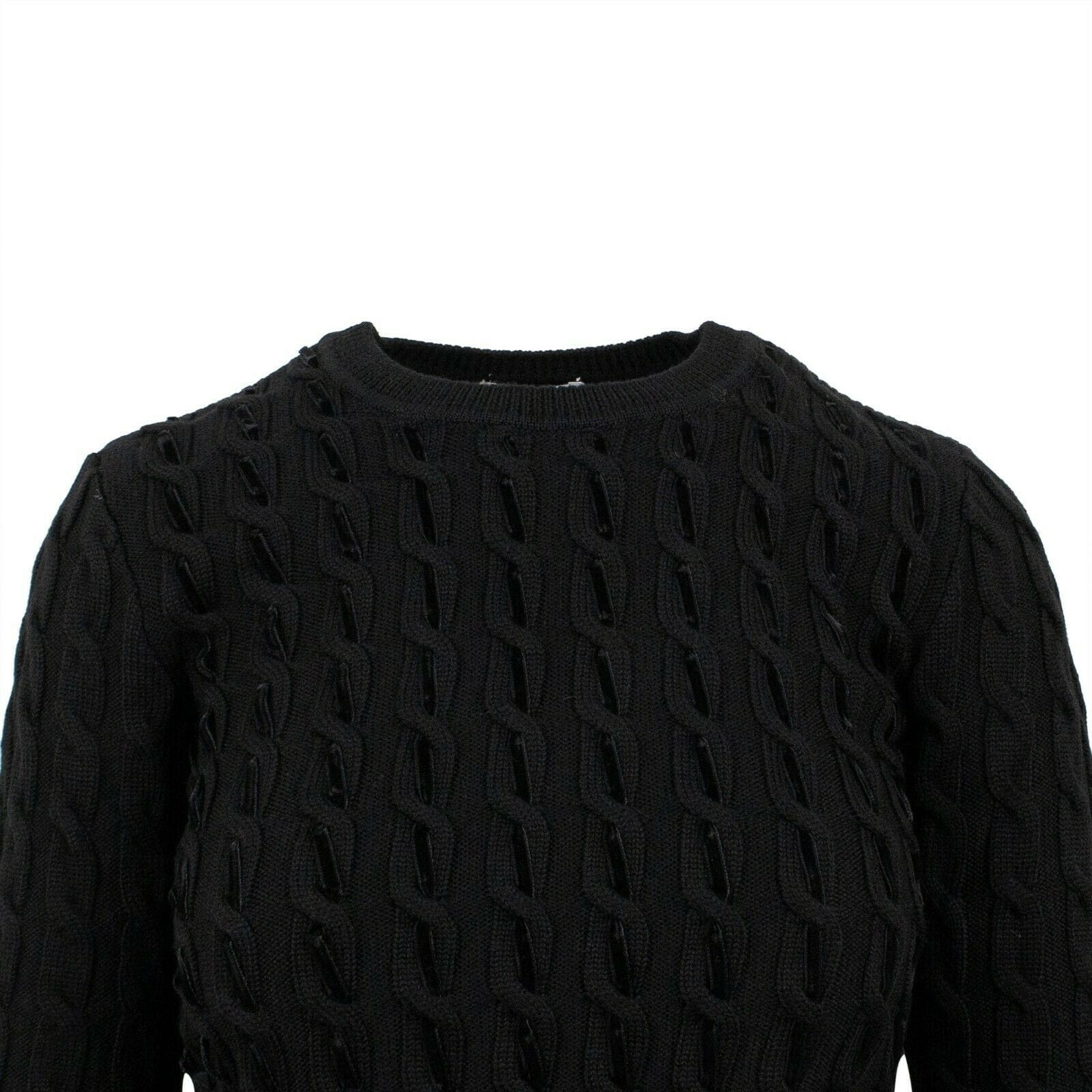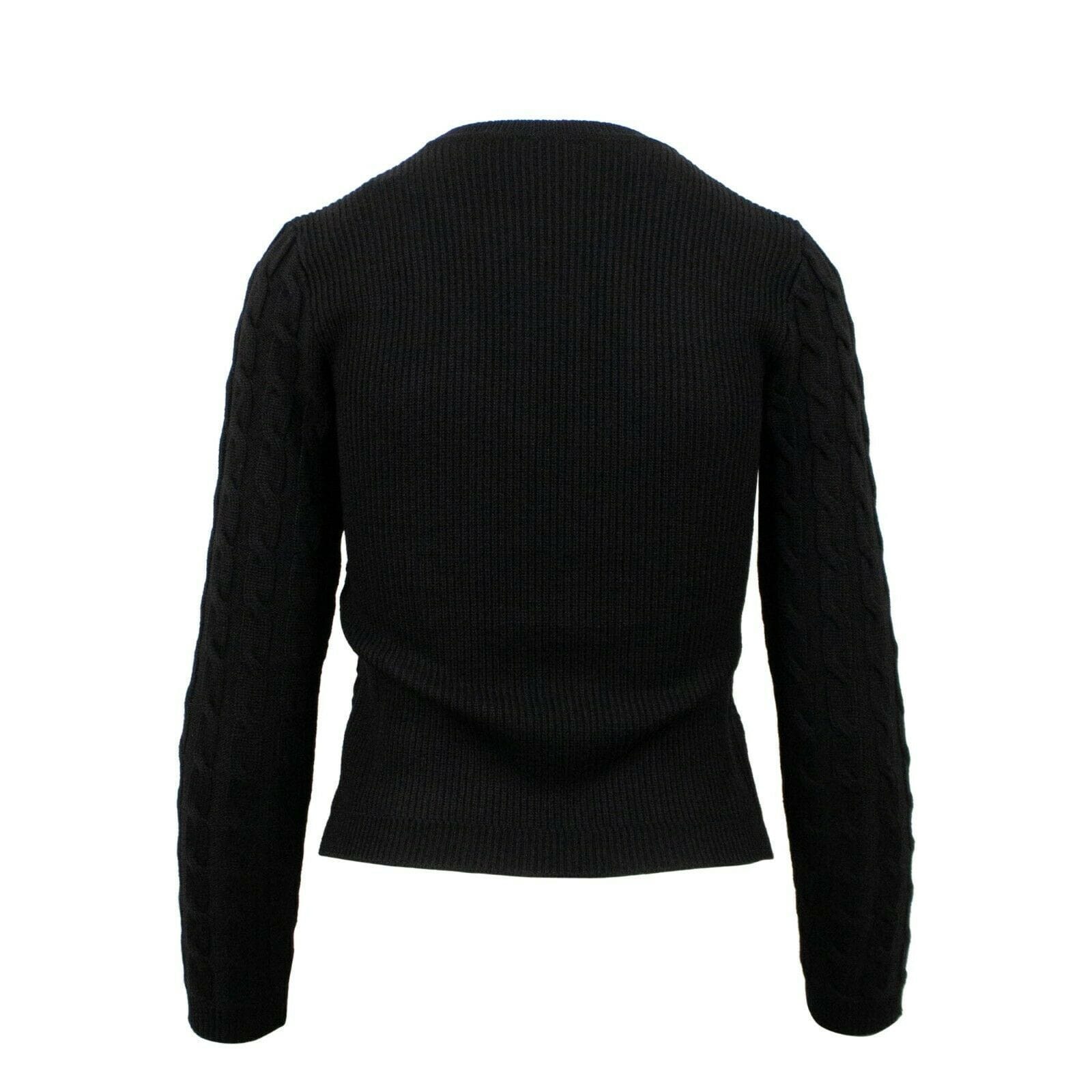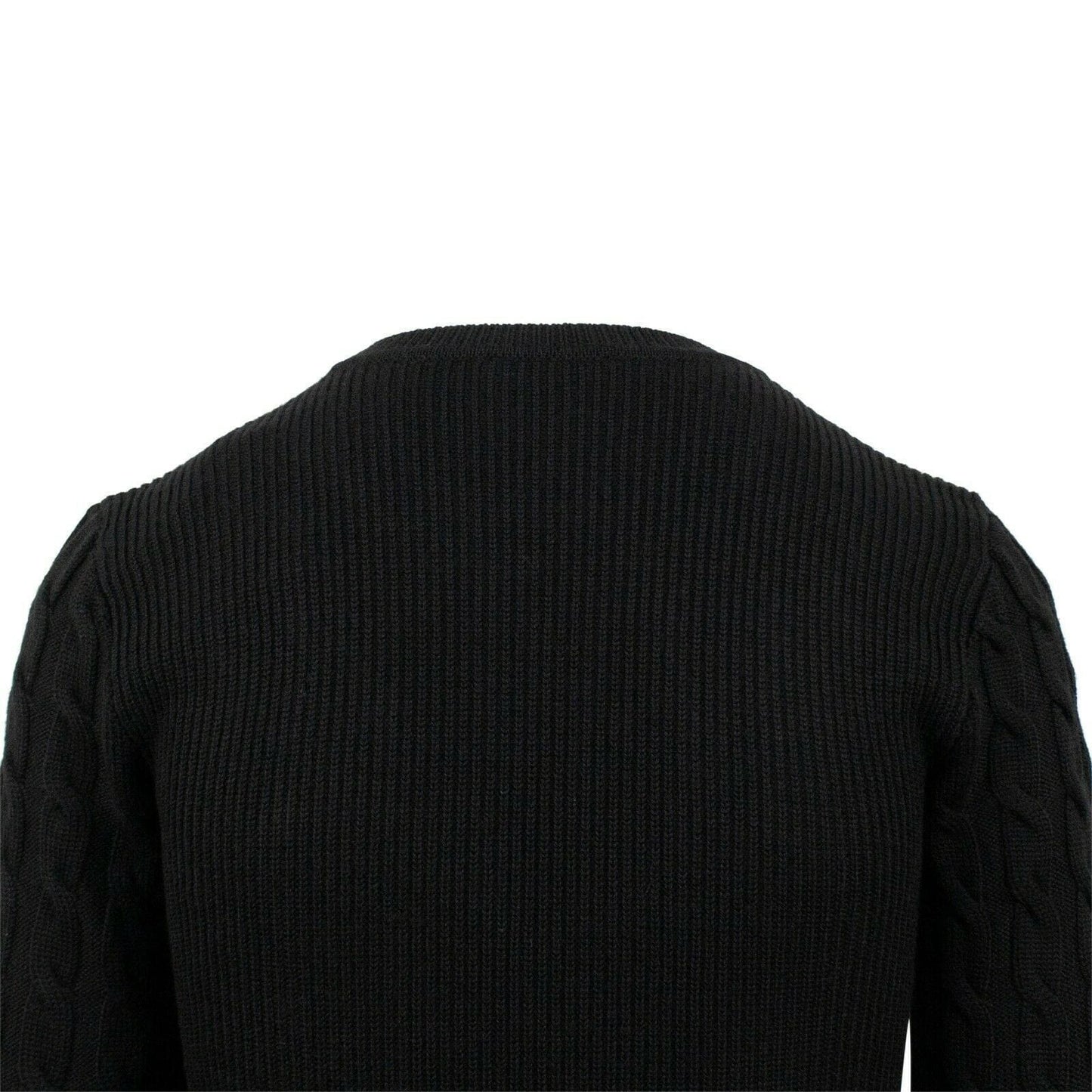 Wool Velvet Detail Cable Knit Sweater - Black